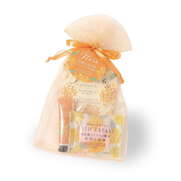 金木犀シリーズ ウィズフローラ金木犀 オーガンジーセット 858円 入浴剤2点とミニハンドクリームがセットになった甘く豊かな香りが魅力の金木犀シリーズのボディケアセットです♪