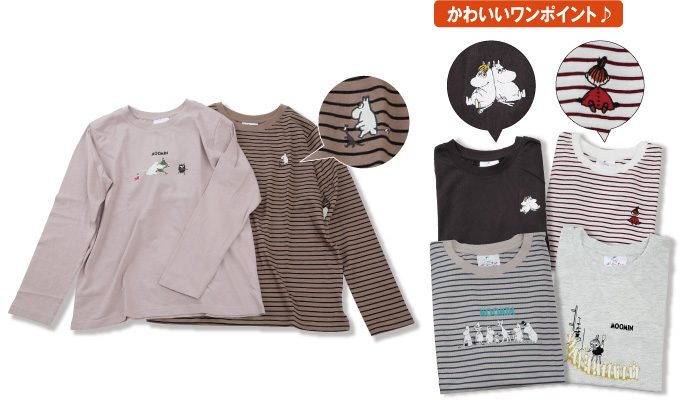 ムーミン長袖Tシャツ 1,980円 腰回りにかかる丈感と絶妙なサイズ感でスカート合わせにも、パンツ合わせにも好相性なトップスです♪